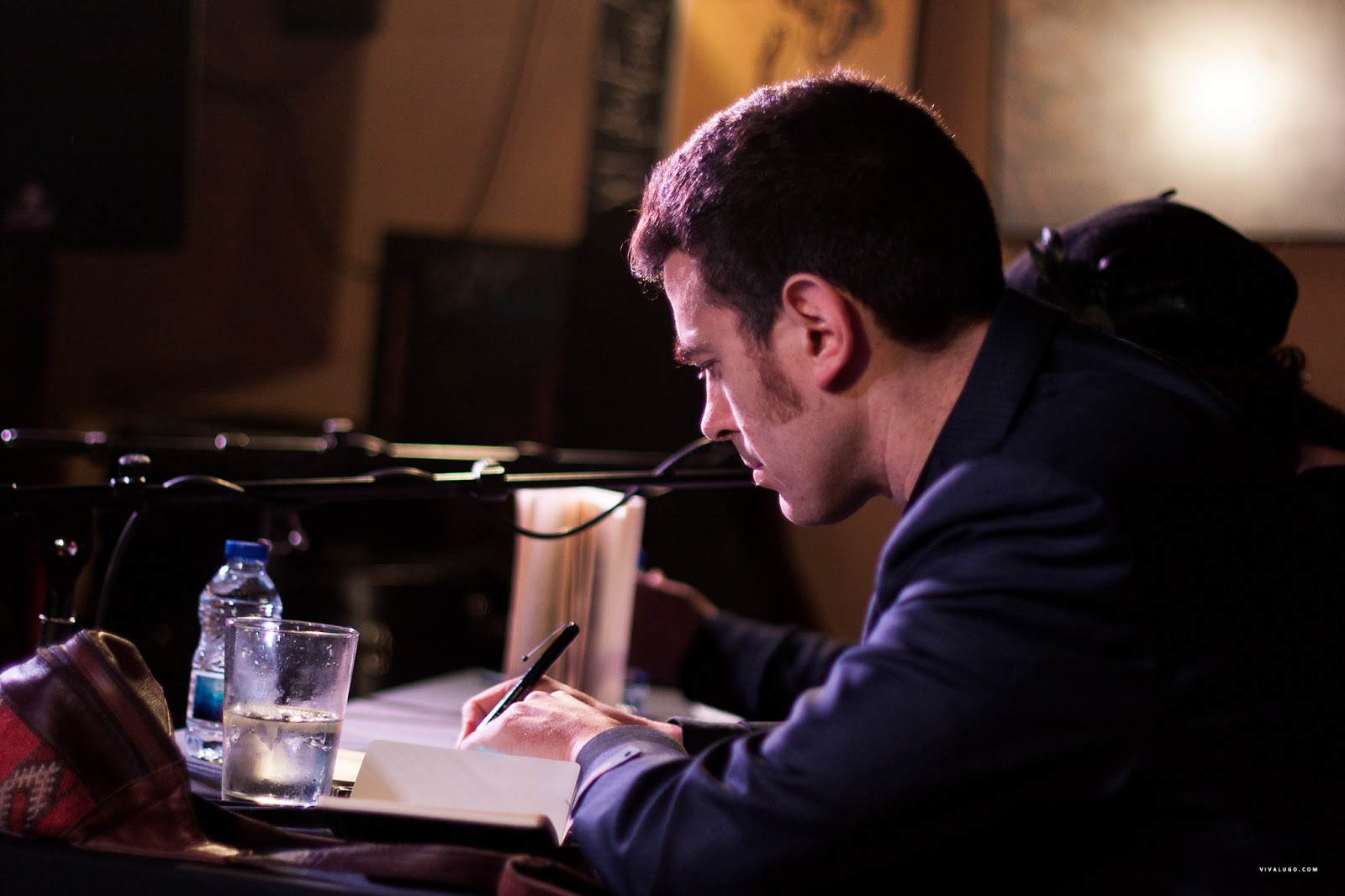 O Lois fíxonos rir moito, moitísimo. Tanto coas súas ocurrencias – é un comediante nato – coma cos poemas do libro (Abadín, Muimenta, a Troco, os baños do Clavi, Ian Curtis, unha muller brasileira ou portuguesa, Ohio, Kentucky … todo nun poema beat… soñeino? é real? …hoxe vou mercar o libro só por averiguar) Fíxonos participar repetindo partes, distribuiu tempos e coros coma o líder dos Stones, e soubo introducir seriedade e cordura e sentimentos fondos e incluso de rabia final acabando nun estoupido sonoro: aplausos e gran ovación … queremos máis, queríamos máis … desexamos que esta presentación deste LP doble… o Long Play de Lois Pérez … a súa cara A e cara B e viceversa non acabara nunca.