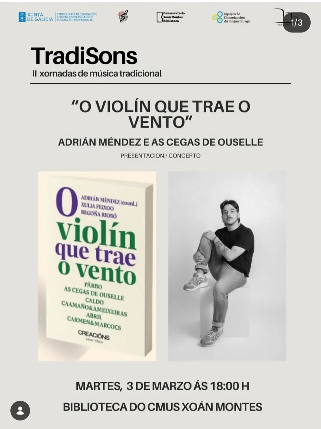 CMUS Xoán Montes Xosé Castiñeira 5, LUGO, Lugo, SpainMartes 3 de marzo 18:00 horas na Biblioteca do CMUS Xoán Montes Presentación-concerto “O violín que trae o vento”, da man de Adrián Méndez e As Cegas de Ouselle. Un […]