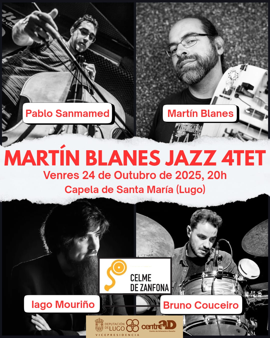 Martín Blanes Jazz 4tet Venres 24 de outubro de 2025 20:00 horas Capela de Santa María - Lugo