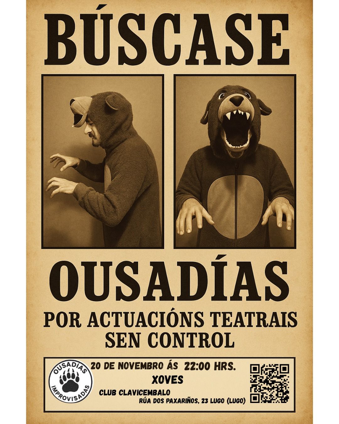 Impro teatro - Ousadías Xoves 20 de novembro de 2025 22:00 horas Club Clavicémbalo de Lugo