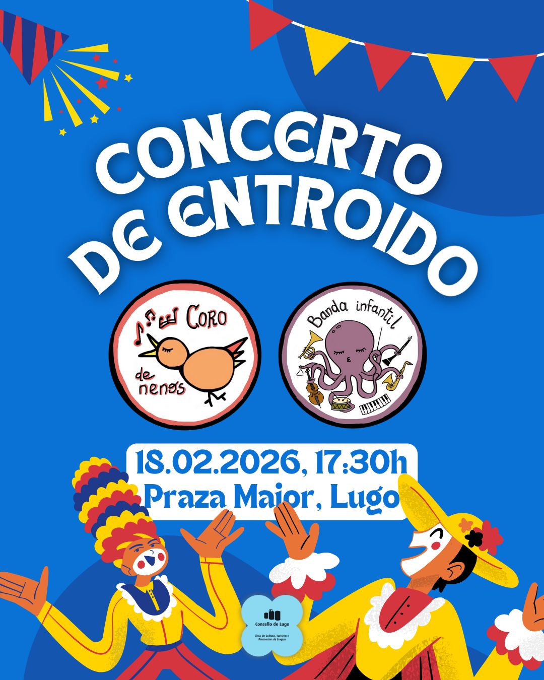 Concerto de entroido das agrupacións infantís de coro e banda da Banda Filharmónica de Lugo 18/02/2026 17:30 horas Praza Maior de Lugo Entrada de balde.