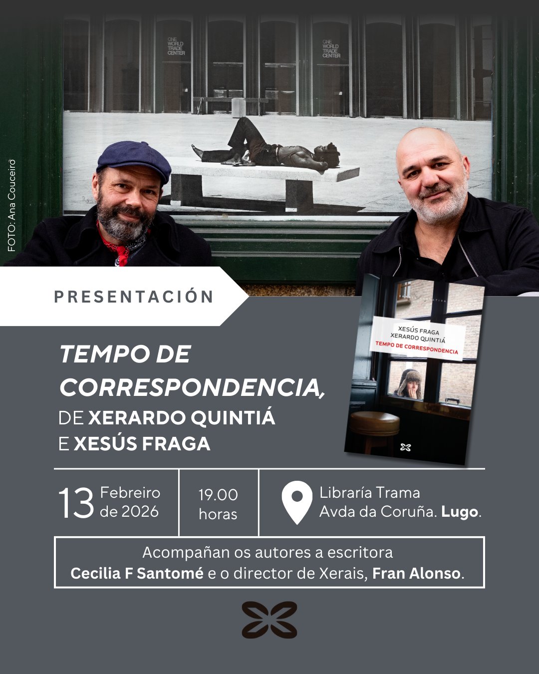 O venres, 13 de febreiro, ás 19:00h, terá lugar na Librería Trama a presentación de Tempo de correspondencia (Xerais), de Xerardo Quintiá e Xesús Fraga. Acompañando aos autores estarán a […]