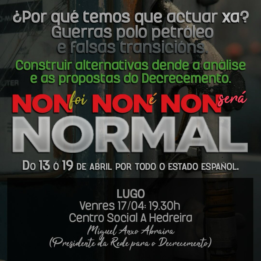 Venres 17 ás 19:30 en A Hedreira "The Oil Crash Anunciando el "No Normal Tour" No Normal Tour: Por qué hay que actuar ya Por ese motivo, más de 30 […]