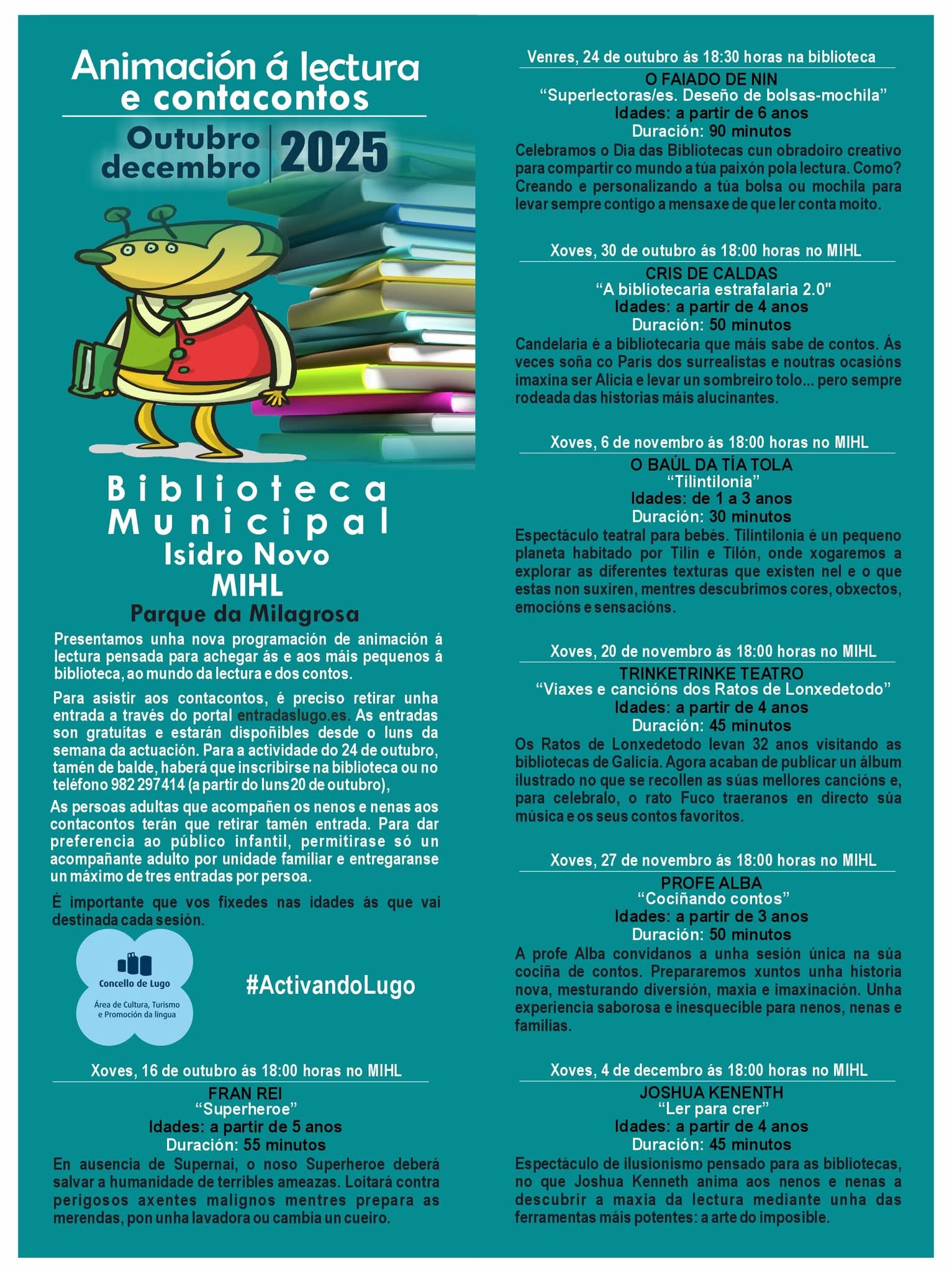 Familiar "A bibliotecaria estrafalaria 2.0" CRIS DE CALDAS xoves, 30 de outubro de 2025 18:00 hs. Lugar: MIHL, Museo Interactivo da Historia de Lugo Idade recomendada: A partir de 4 anos Sinopse: […]