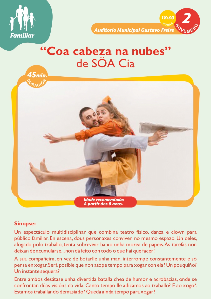 Familiar - "Coa cabeza na nubes" SÖA Cia. Domingo, 2 de novembro de 2025 18:30 hs. Lugar: Auditorio Municipal Gustavo Freire Categoría: Teatro Familiar Idade recomendada: A partir dos 6 anos Sinopse: Un […]