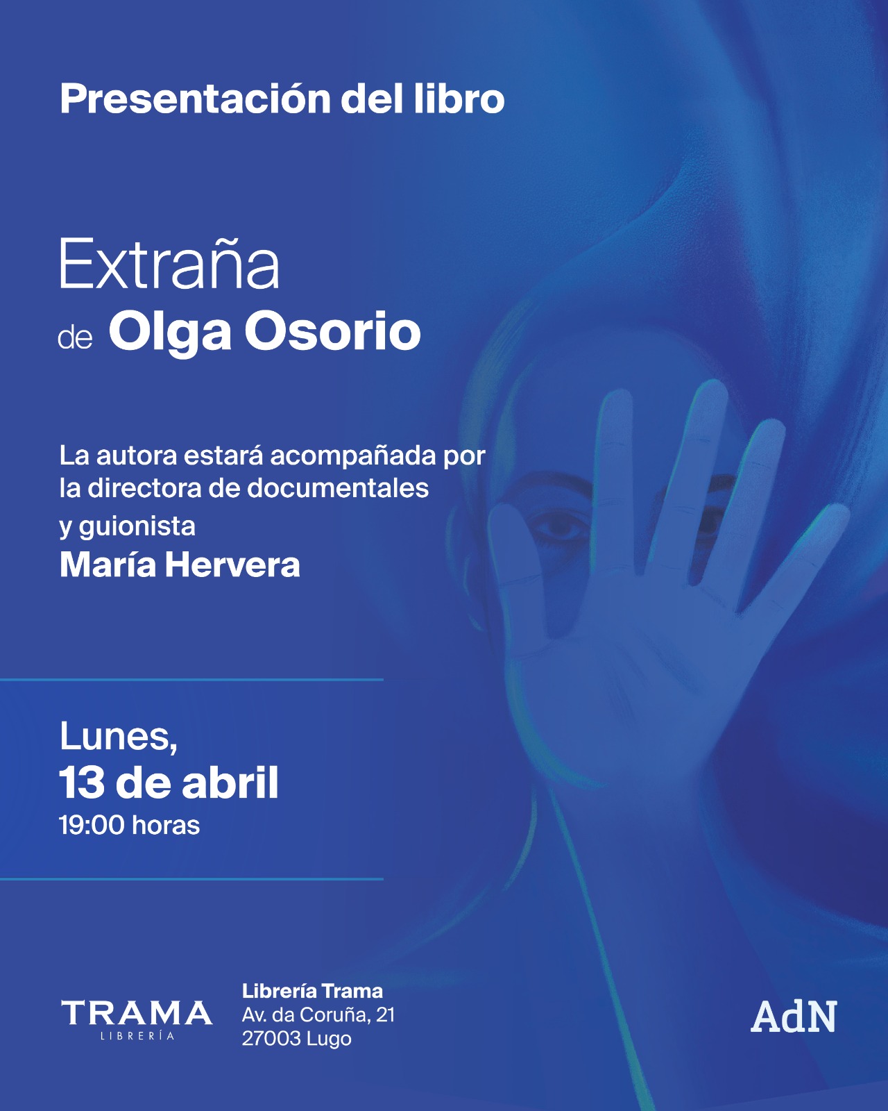 Librería Trama Avenida A Coruña, 21, LugoO luns, 13 de abril, ás 19:00h, terá lugar na librería Trama a presentación de 'Extraña', de Olga Osorio, editado por AdN. A autora estará acompañada da directora e guionista […]