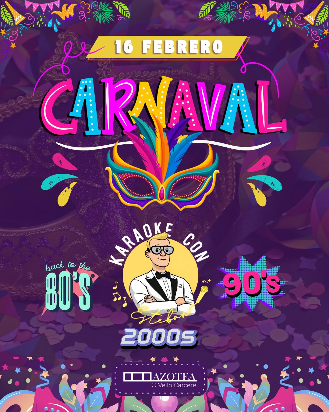 Fiesta de Carnaval - Karaoke con Esteban El lunes 16 de febrero a partir de las 21:00, el Carnaval llega a Azotea O Vello Cárcere con una noche pensada para bailar, […]
