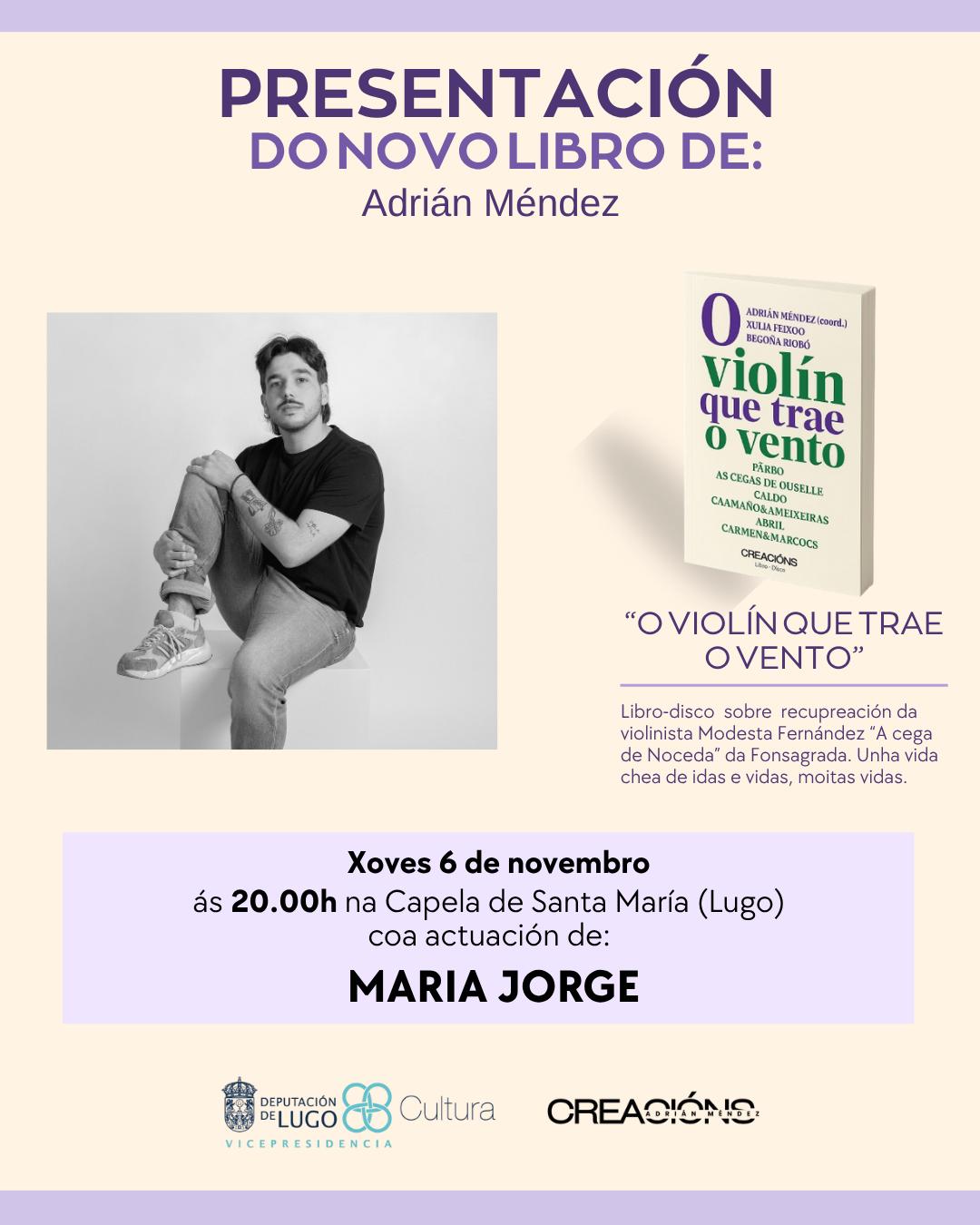 Presentación do novo libro de Adrián Méndez "O violín que trae o vento" Xoves 06 de novembro - 20:00 horas - Capela de Santa María, Lugo