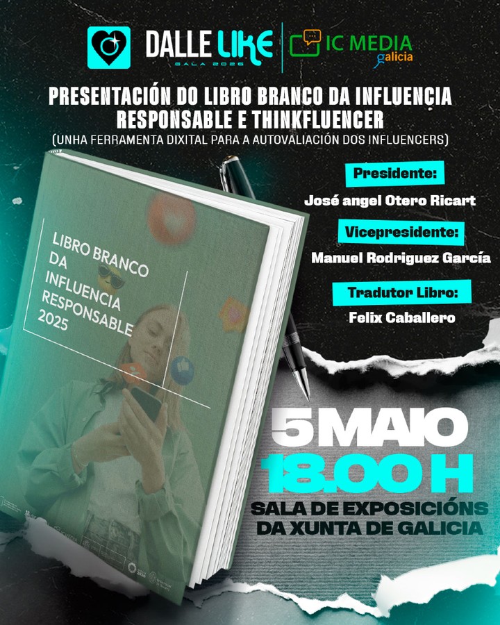 Presentación do "Libro Branco da Influencia Responsable e Thinkfluencer" 5 de maio ás 18:00h - Sala de Exposicións da Xunta de Galicia en Lugo Imprescindible anotarse en: dallelike@gmail.com