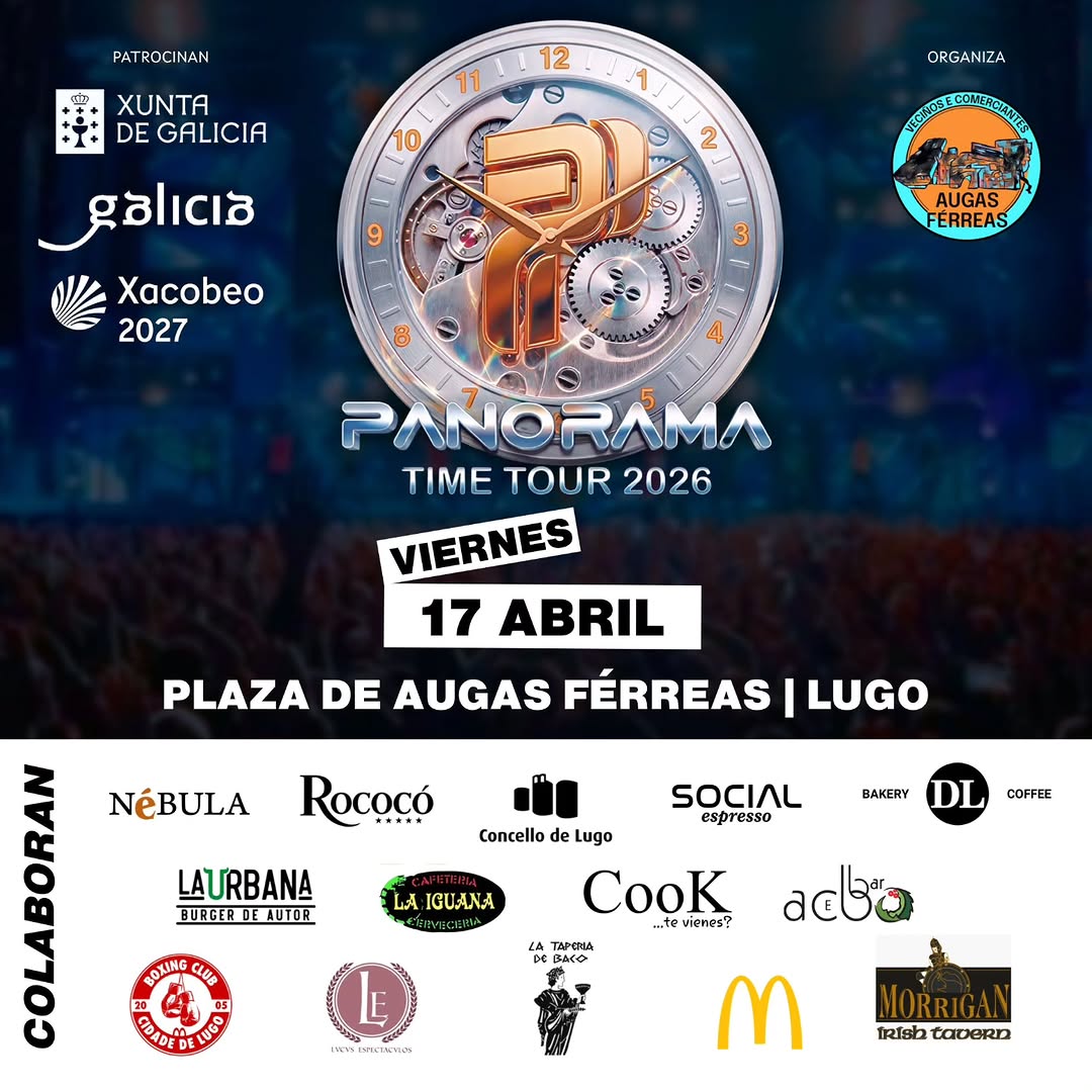 A Panorama en concerto - Time Tour 2026 Praza de Augas Férreas, Lugo Venres 17 de abril de 2026 A partir das 22:30 De balde
