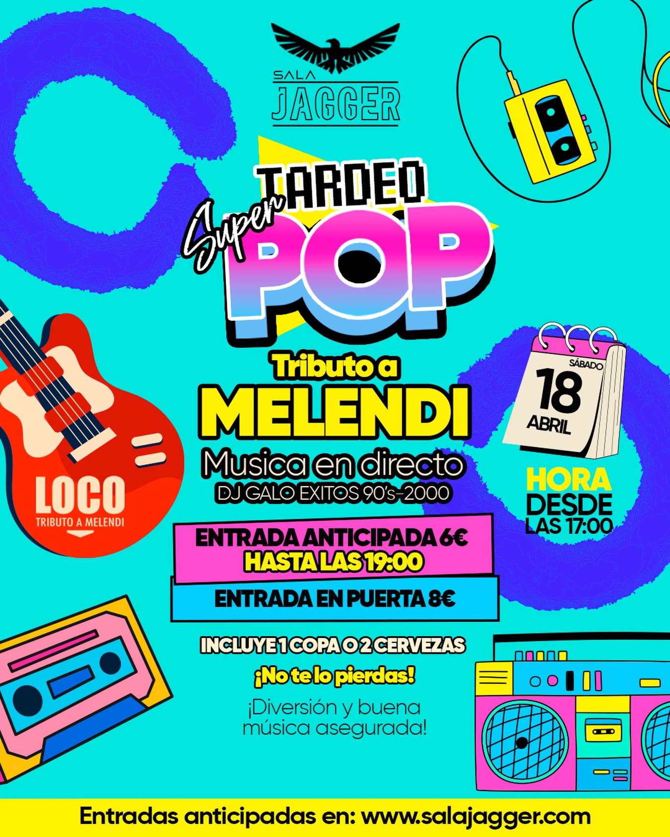 Sala Jagger Sábado 18 de abril 17:00 h LOCO trae los grandes éxitos de Melendi en un directo pensado para disfrutar, cantar y brindar desde primera hora. Y después, DJ […]