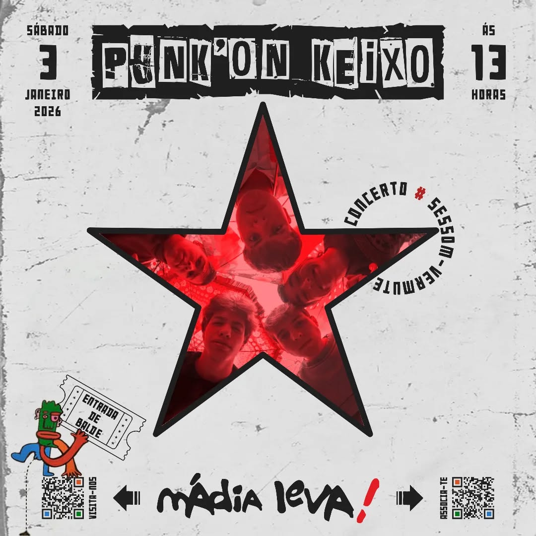 Concerto de Punk'on Keixo Sábado 03 de xaneiro de 2025 13:00 horas Entrada de balde Madia Leva C. S. Lugo