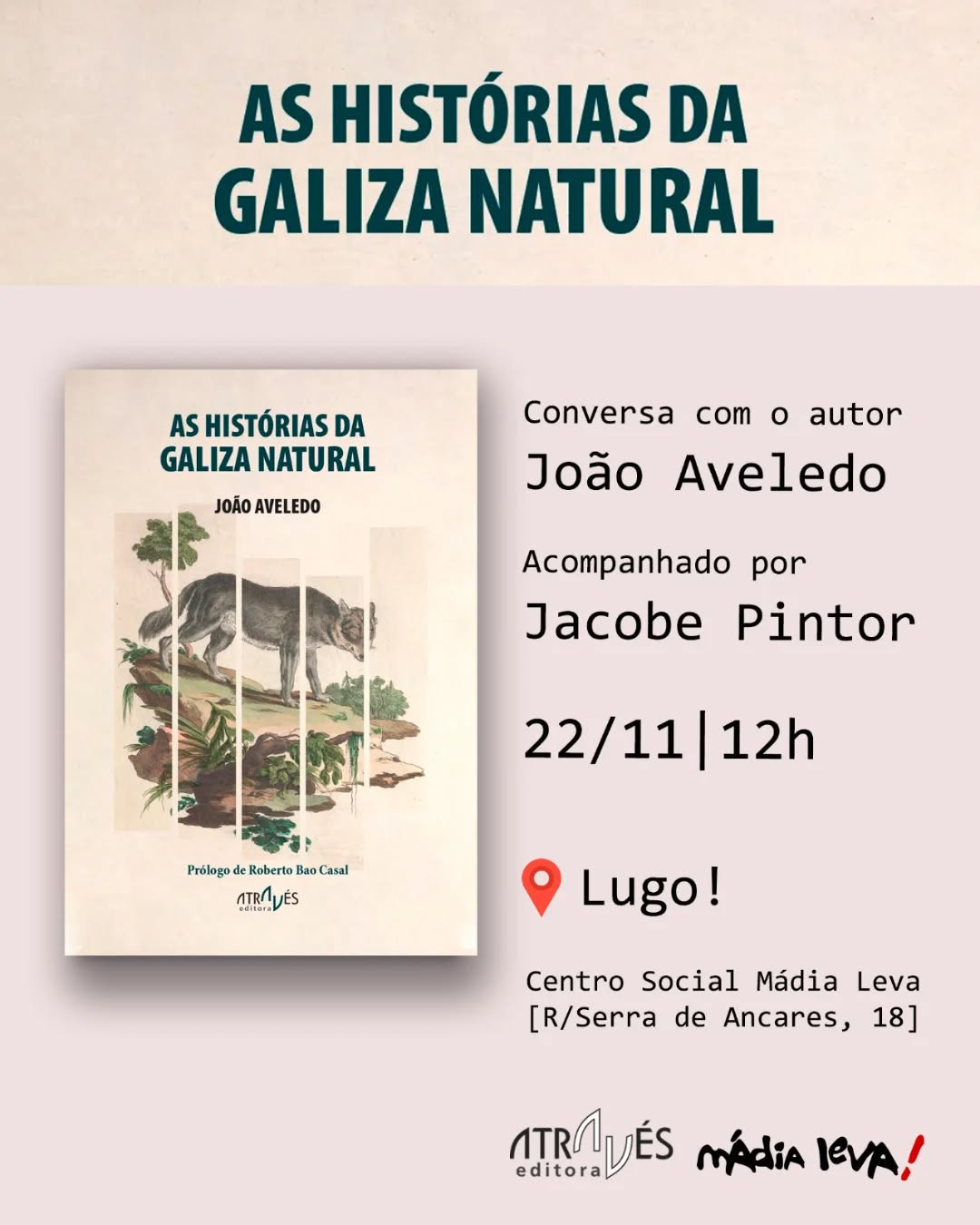 "O dia 22 de novembro às 12h00 temos o lançamento do livro da @atraveseditora Histórias da Galiza Natural com a presença da autor João Aveledo. No Mádia Leva"