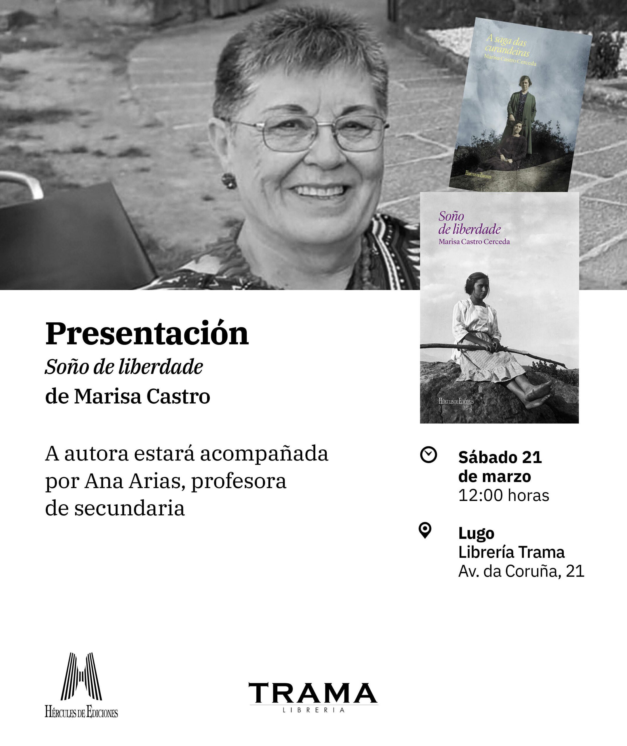 Presentación do libro "Soño de liberdade" a última obra da escritora e divulgadora Marisa Castro. Sábado, 21 de marzo, ás 12:00 h. Libraría Trama (Lugo). No acto, a autora contará coa participación da profesora Ana Arias, quen axudará a debullar os detalles dunha historia que pon o foco na transición social de Galicia a través […]