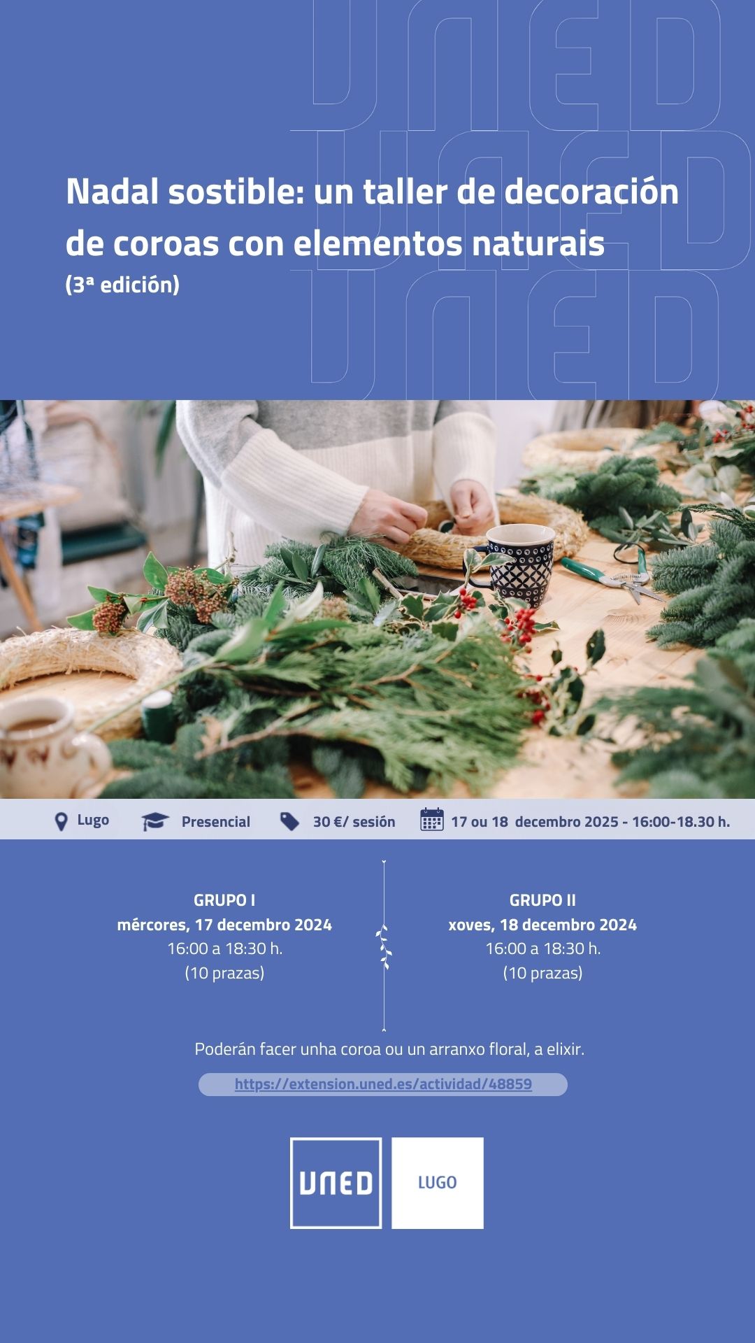 Realizarase presencial (Sede UNED Lugo), o 17 ou o 18 de decembro de 2025