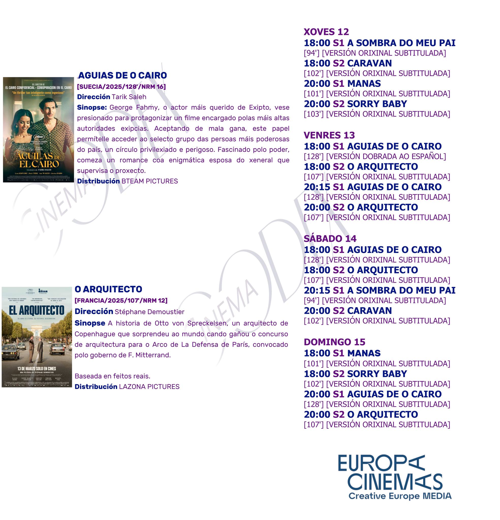 Podes ver a carteleira dos Cines Codex na súa web oficial ou na seguinte imaxe: