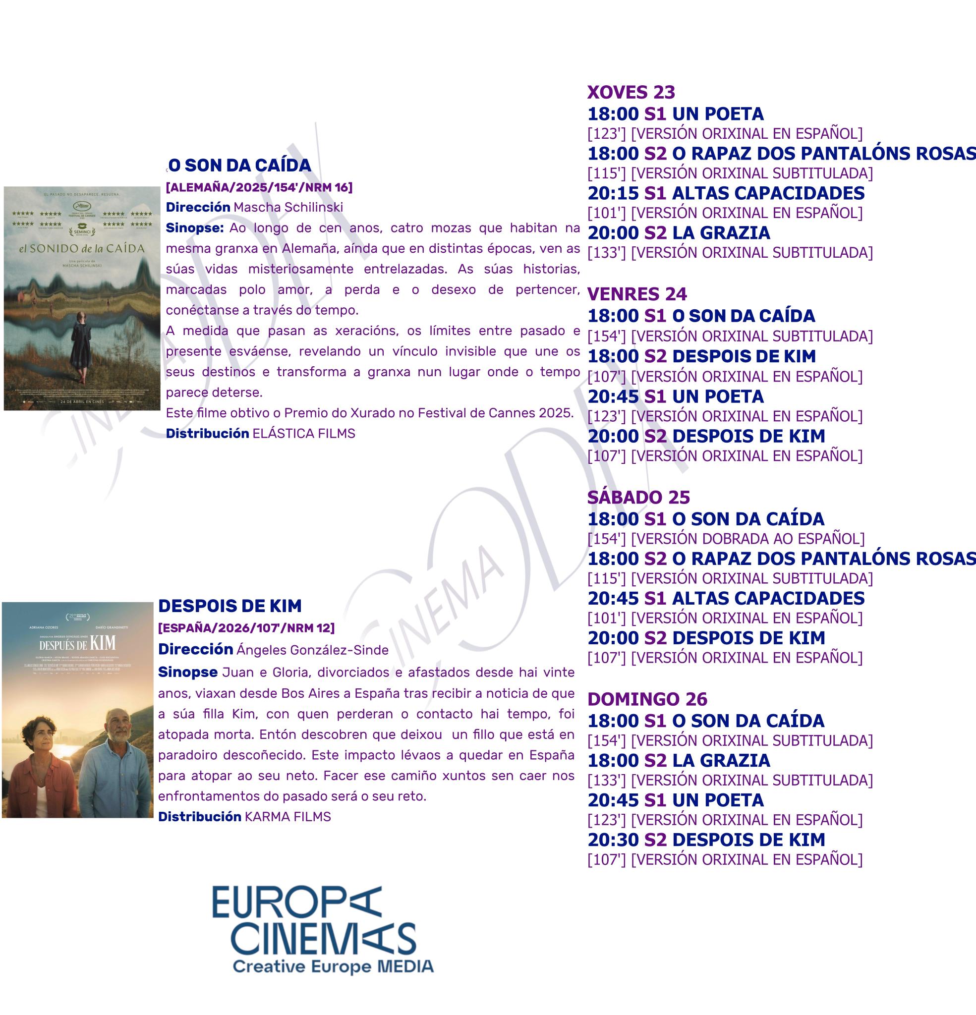Podes ver a carteleira dos Cines Codex na súa web oficial ou na seguinte imaxe: