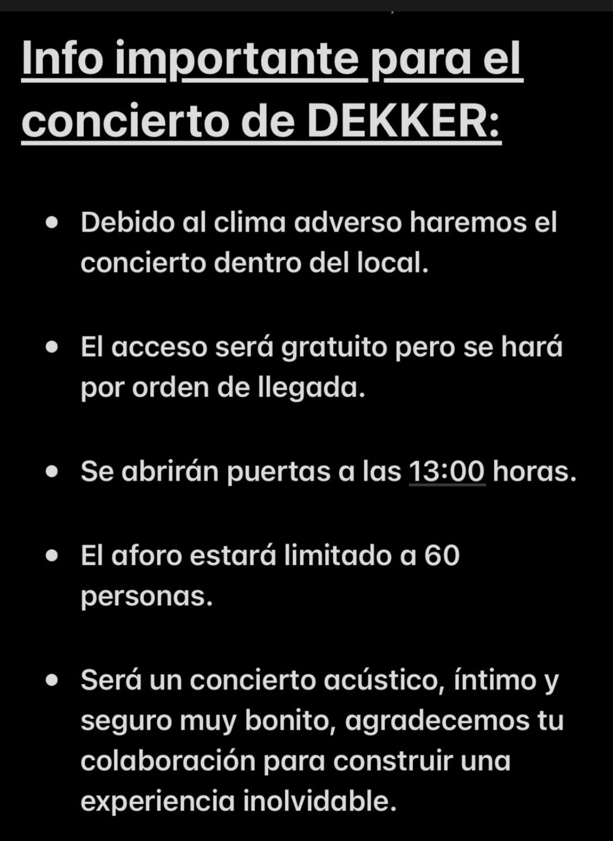 «Con una media de casi un millón de oyentes mensuales en streaming y poseedor de grandes himnos como “Maybe october” o “The love” rondando los 50 millones de escuchas, tener al estadounidense Brookln Dekker en nuestra terraza presentando su nuevo trabajo “Neither Up Nor Down” (2025) es todo un auténtico lujo. Tan solo 8 fechas son las del americano en España, así que te recomendamos venir a verlo.