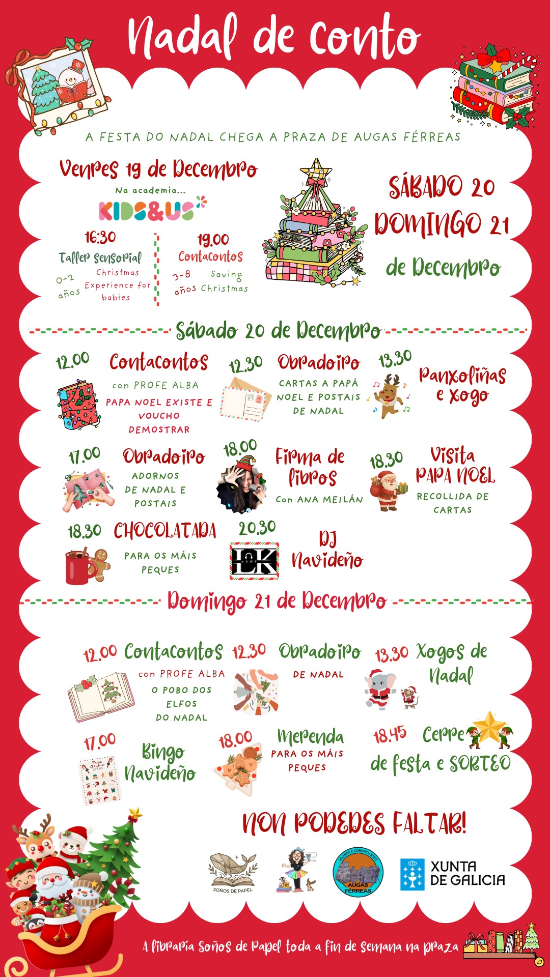 Contacontos, obradoiros, a visita de Papa Noel, DJ, chocolatada, sorpresas, firma de libros, aventuras musicais, xogos… TODO PARA UNHA FIN DE SEMANA EN FAMILIA