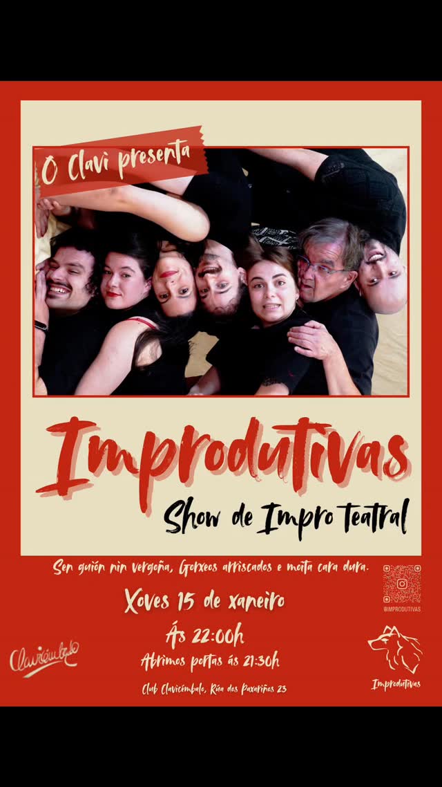 O xoves 15 de xaneiro de 2026, a partir das 21:30 (comeza ás 22h), no Club Clavicémbalo, show de impro teatral con Improdutivas.