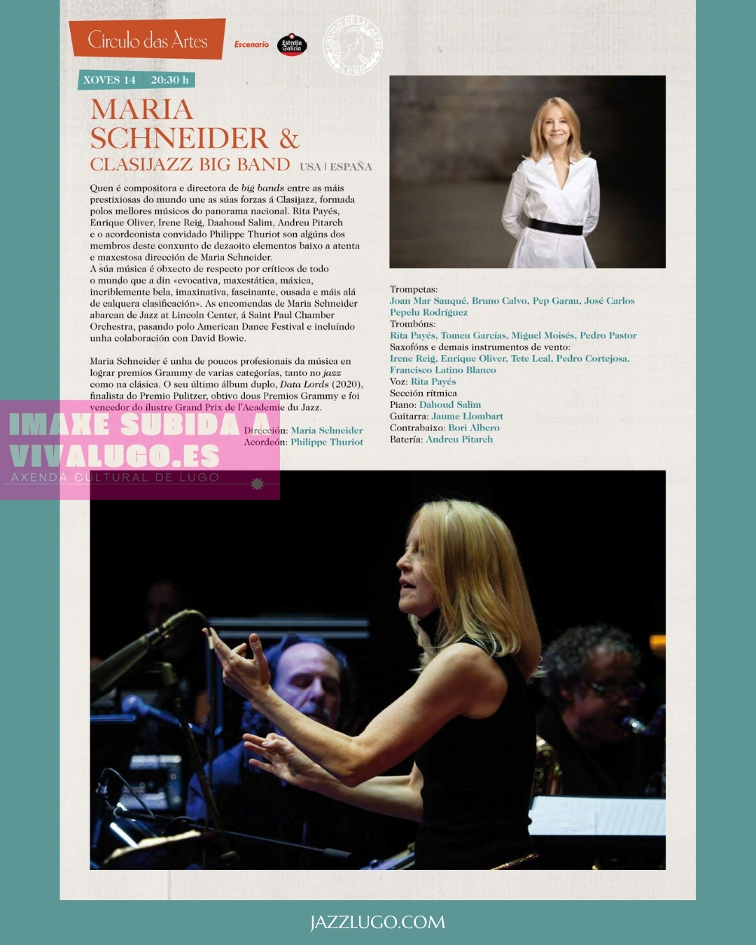 14 nov. 20:30 h Maria Schneider Orchestra & Clasijazz Big Band.