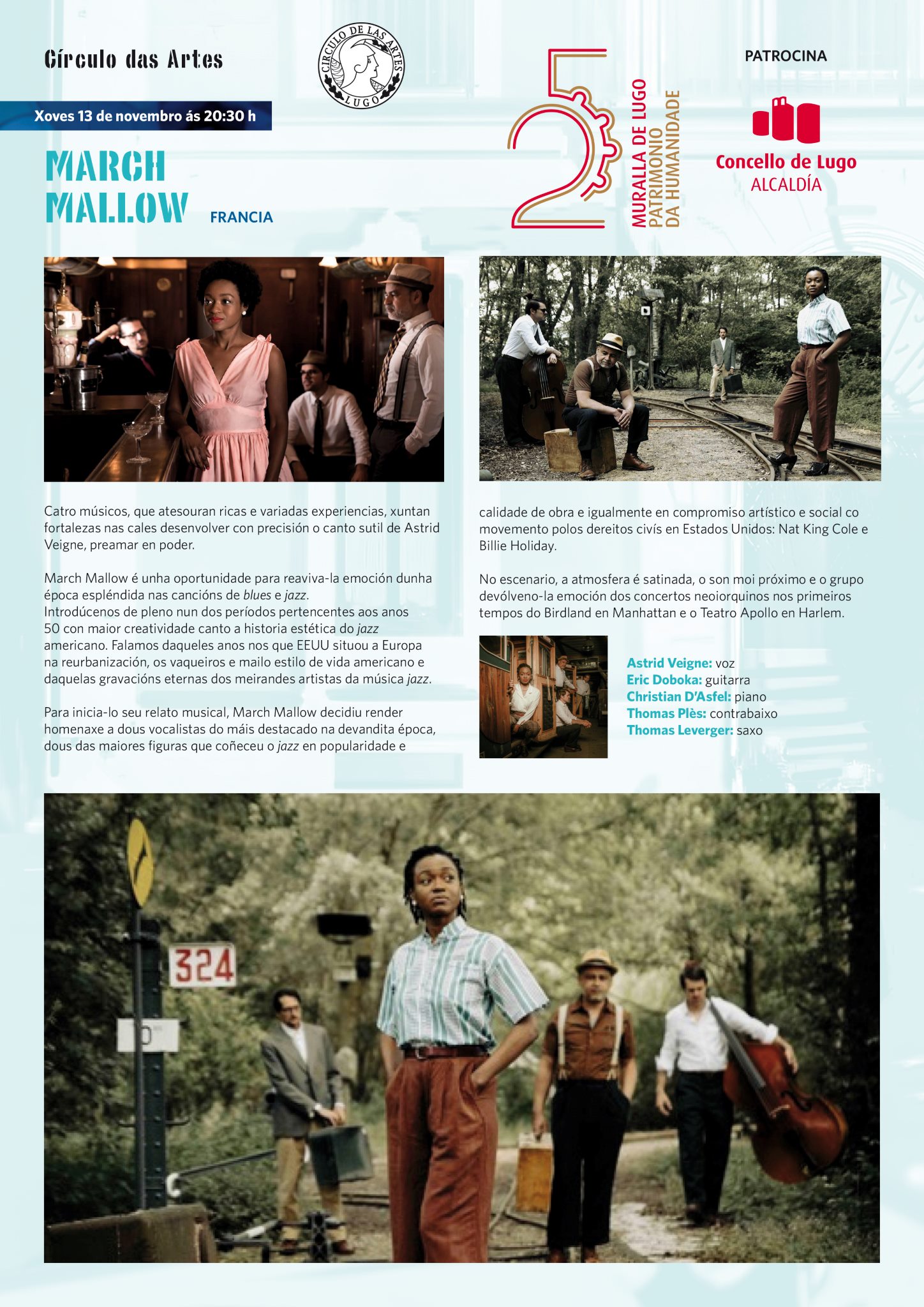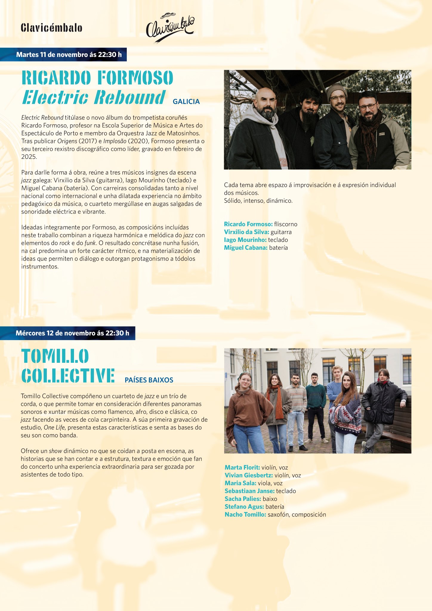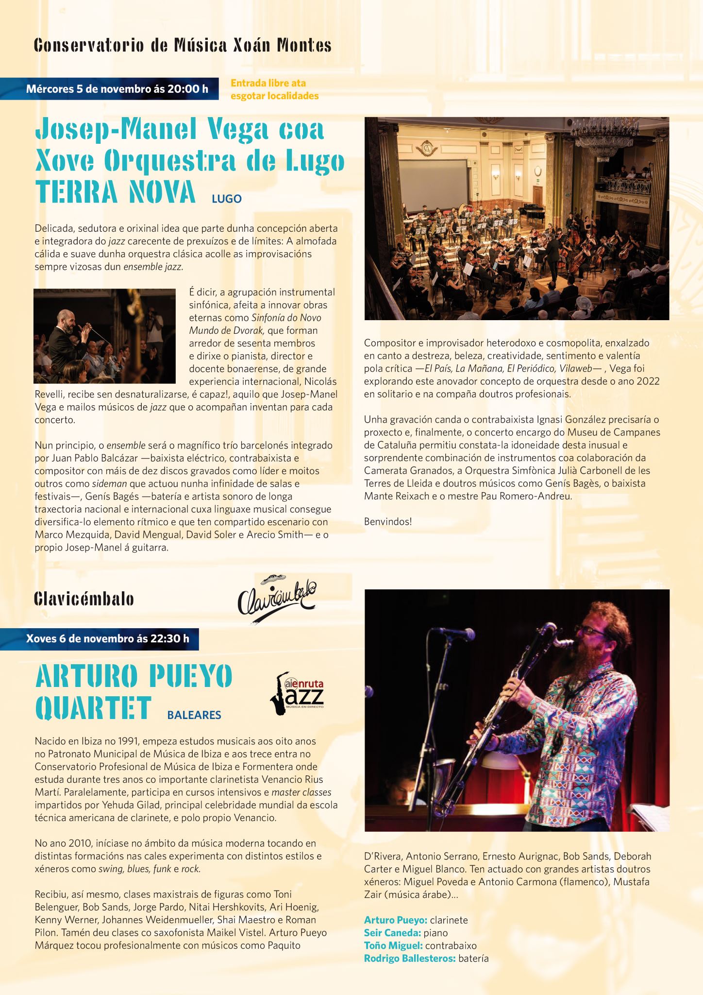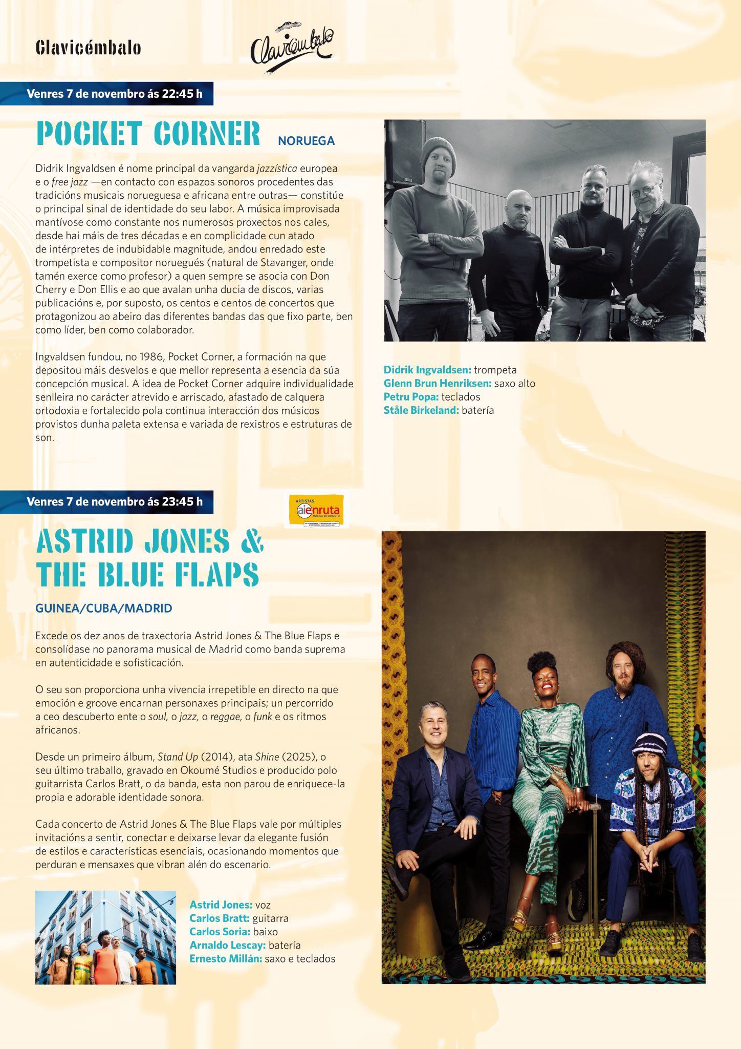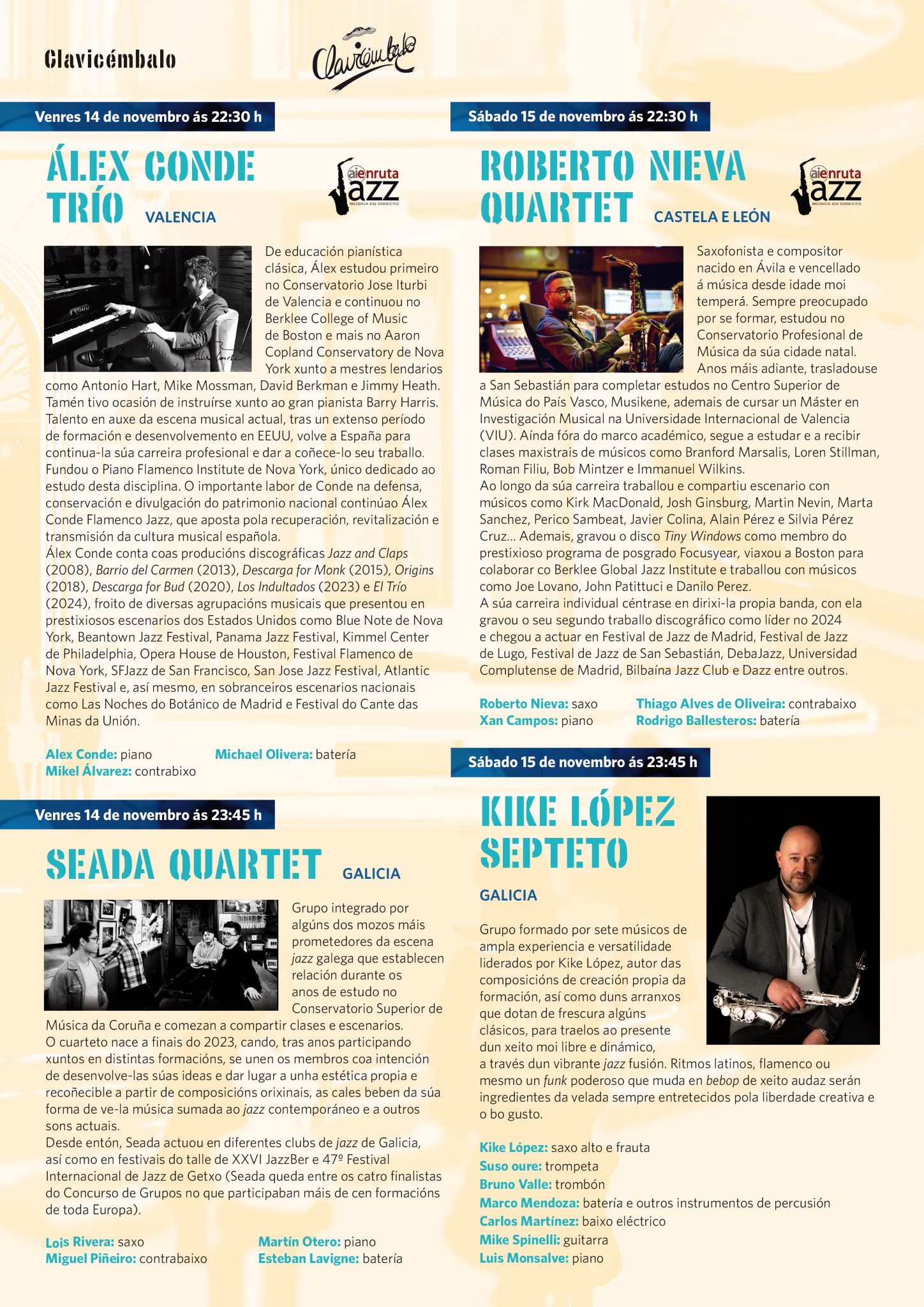 Este ano, 24 concertos, tanto de estrelas e grandes figuras internacionais como de novos valores do mundo do Jazz e, por suposto, representantes do mellor jazz estatal e galego.