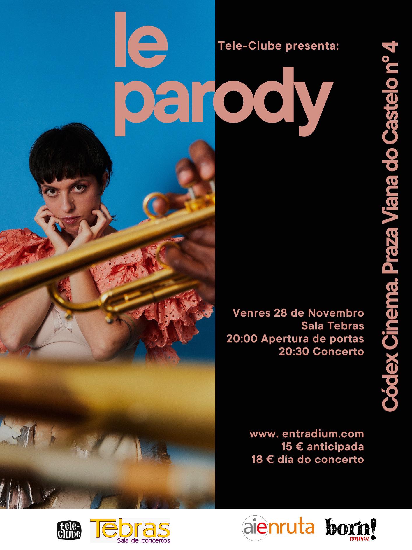 Seguindo coa xeira do seu último disco, Los Remedios, Le Parody actuará o Venres 28 de Novembro as 20:30 na Sala Tebras de Codex Cinema na Praza Viana do Castelo, 4, 27297 Lugo. Apertura de portas as 20:00, entrada anticipada 15€, na taquilla 18€.