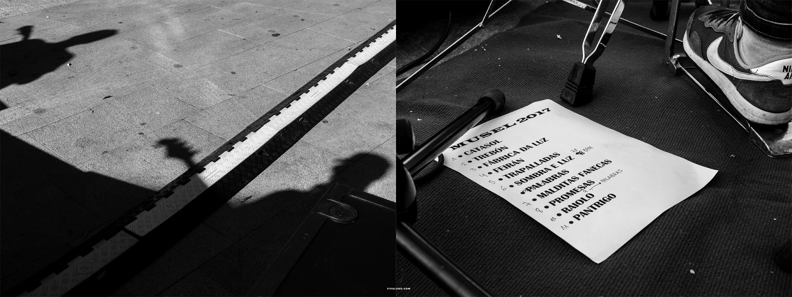 Sabíamos que ía pasar e pasou. Por primeira vez saltou a sinestesia que non padecemos e que raramente acontece, de súpeto, sempre coa cámara de fotos … e disparamos movendo a cámara, trepidando, facendo dobres exposicións dos Musel en directo e dos Musel reflexados nos cristales dos escaparates. Foron 10 minutos, pode ser, cando acontece perdemos o sentido do tempo e do espacio. Hay fotos do concerto, si…hay fotos da música dos Musel…tamén. Dalle ó play ó seu bandcamp … pecha os ollos, ¿qué ves?