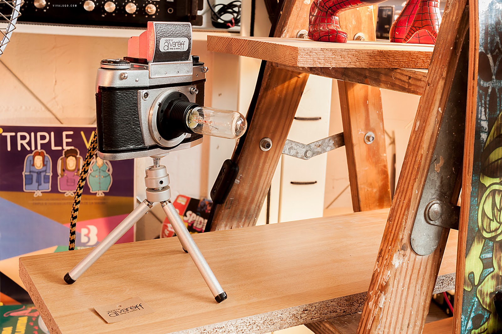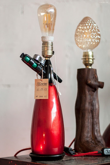 Si quieres ver y/o comprar una lámpara o hacerle un encargo (tu le llevas el objeto y él lo convierte en lámpara), visita su Facebook y ponte en contacto con Alvaro, a.k.a. Vladimir Alvaröff.