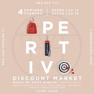 FEB 2018 Este domingo 04 de febrero vuelve el «market» de quita y pon más espectacular de Lugo. Un día para ver (y comprar) productos con descuentos especiales de Sopa De Nuez, Mágicos Gagarin, Urban Foot, Mimico Kids, AWA, Calandracos, BichOh y Jerolas, al ritmo de la buena música que pincha siempre Popy García y con tapas de O Mercado Street Food y la barra made in Galicia de Vinissi para tomarse un vermú dominguero de los buenos.