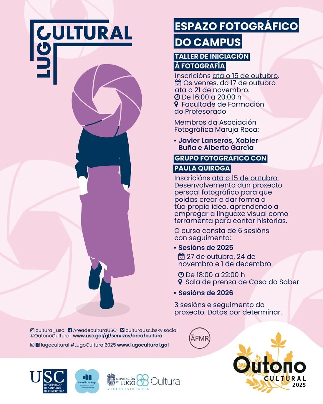 Prezos: membros da comunidade universitaria 80 euros / taxa xeral 150 euros / membros da Asociación Fotográfica Maruja Roca 110 euros