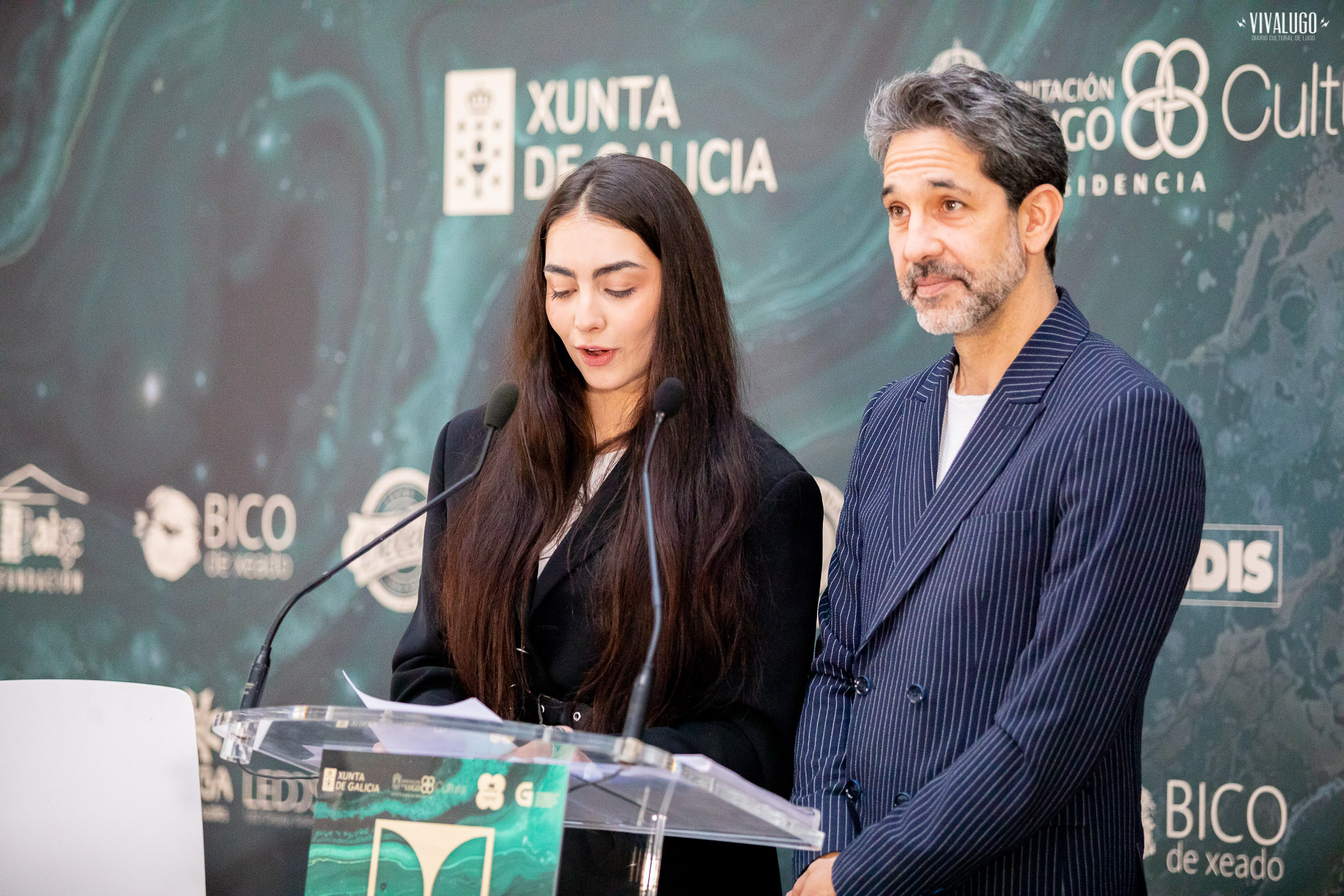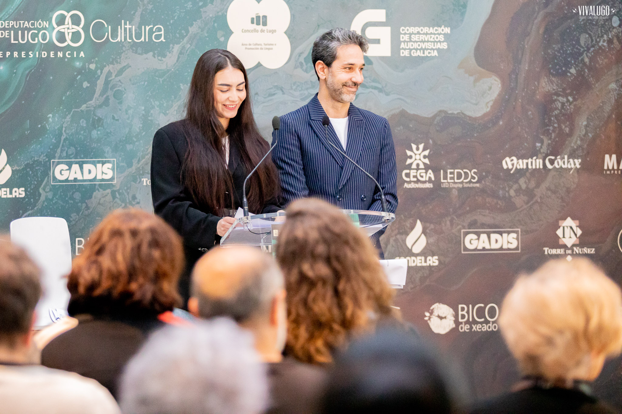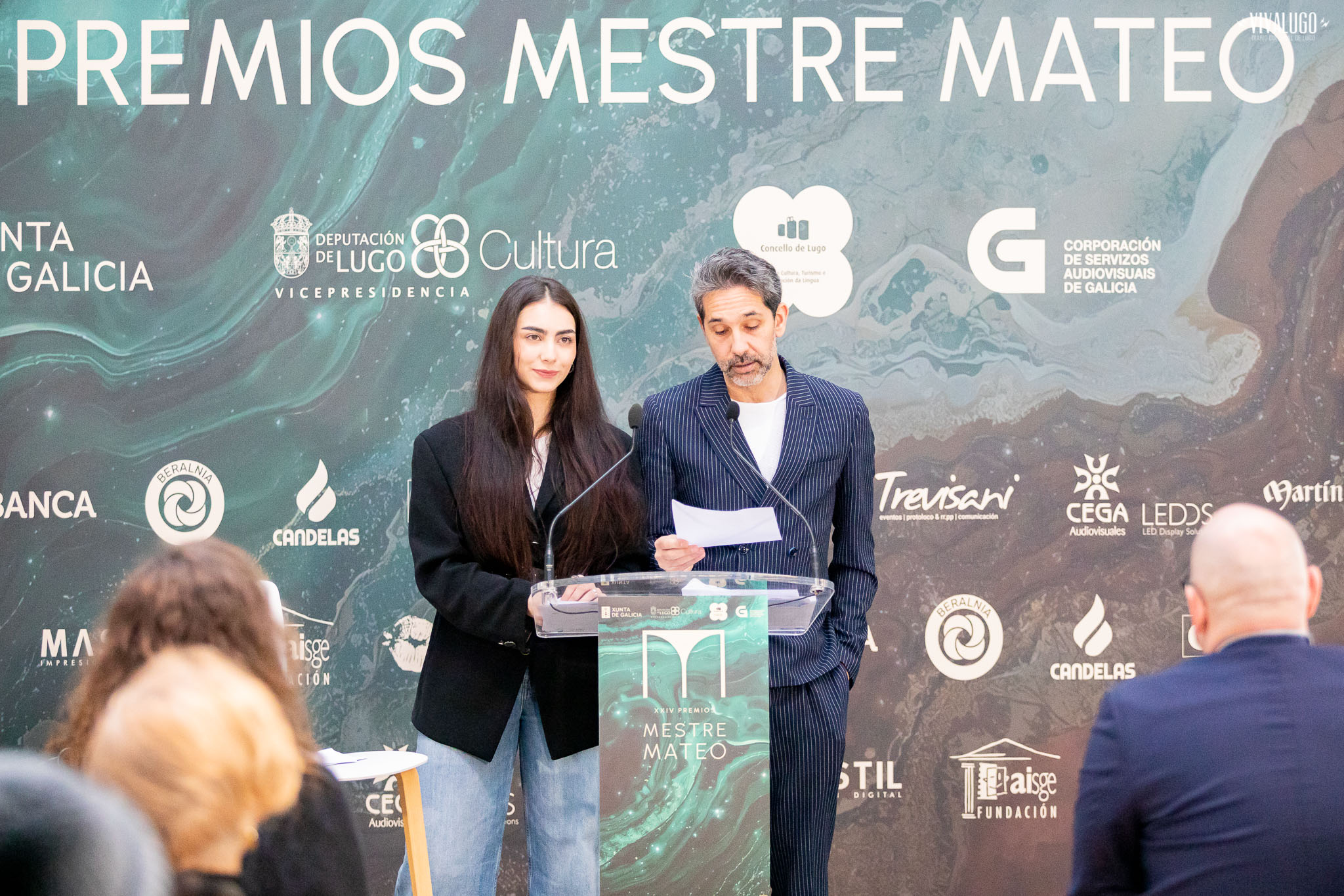 A actriz Andrea Varela e o presentador Juan Fuentes anunciaron esta mañá as candidaturas finalistas da vixésimo cuarta edición dos Premios Mestre Mateo, nun acto celebrado no centro sociocultural O Vello Cárcere de Lugo.