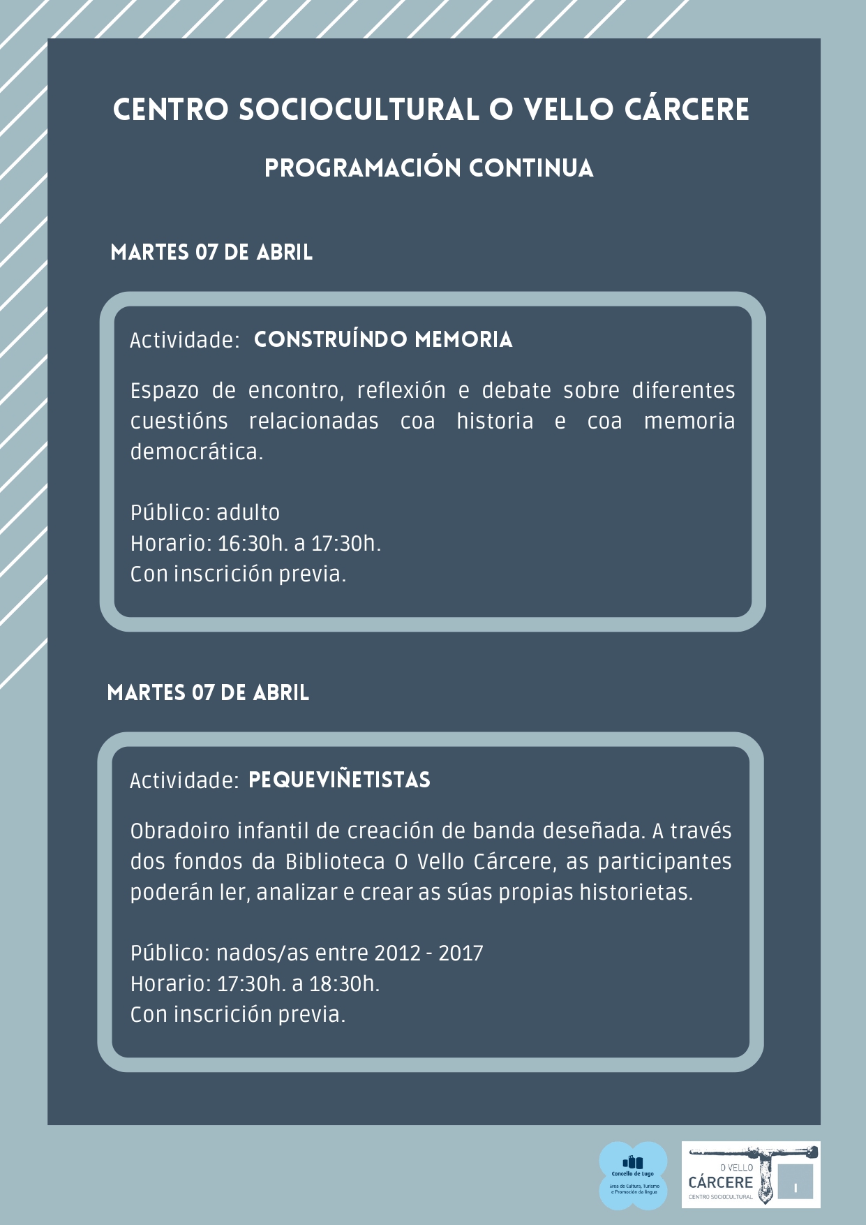 O Vello Cárcere é un espazo que despois de máis de 130 anos de historia, hoxe en día é un lugar fundamental de encontro cultural e social na cidade, acollendo nos seus espazos todo tipo de manifestacións culturais e eventos: exposicións, concertos, obras de teatro, congresos, faladoiros, obradoiros didácticos, etc