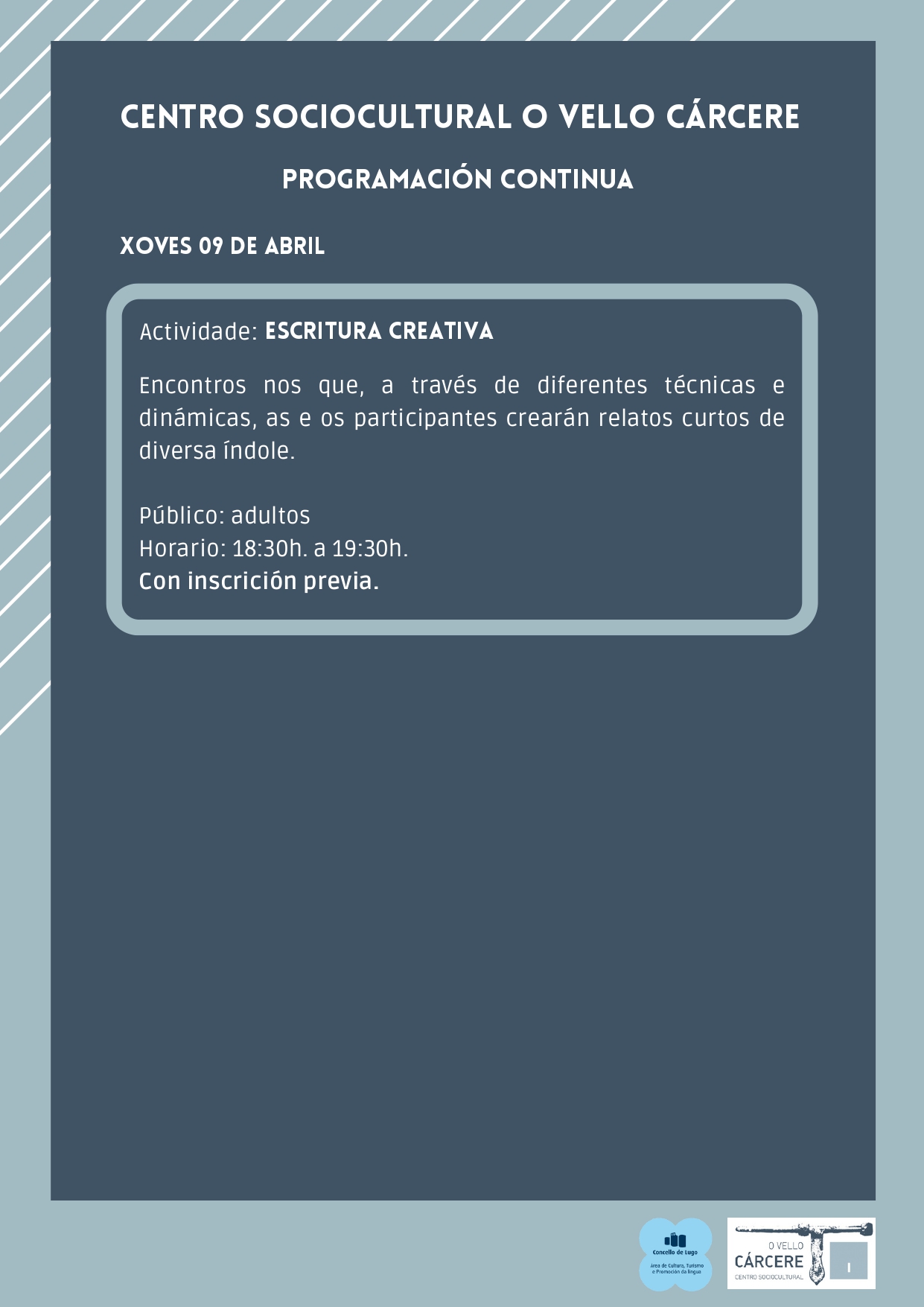 Somos a axenda cultural de Lugo e o medio dixital onde enterarte de tódolos eventos culturais e de ocio da cidade: concertos, teatro, exposicións, cine, espectáculos, presentación de libros, danza…