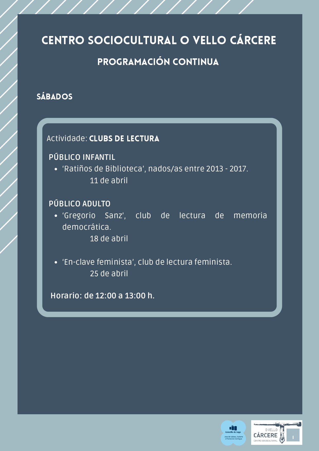 Mañás: todos os días de 11:00 a 14:00 h.