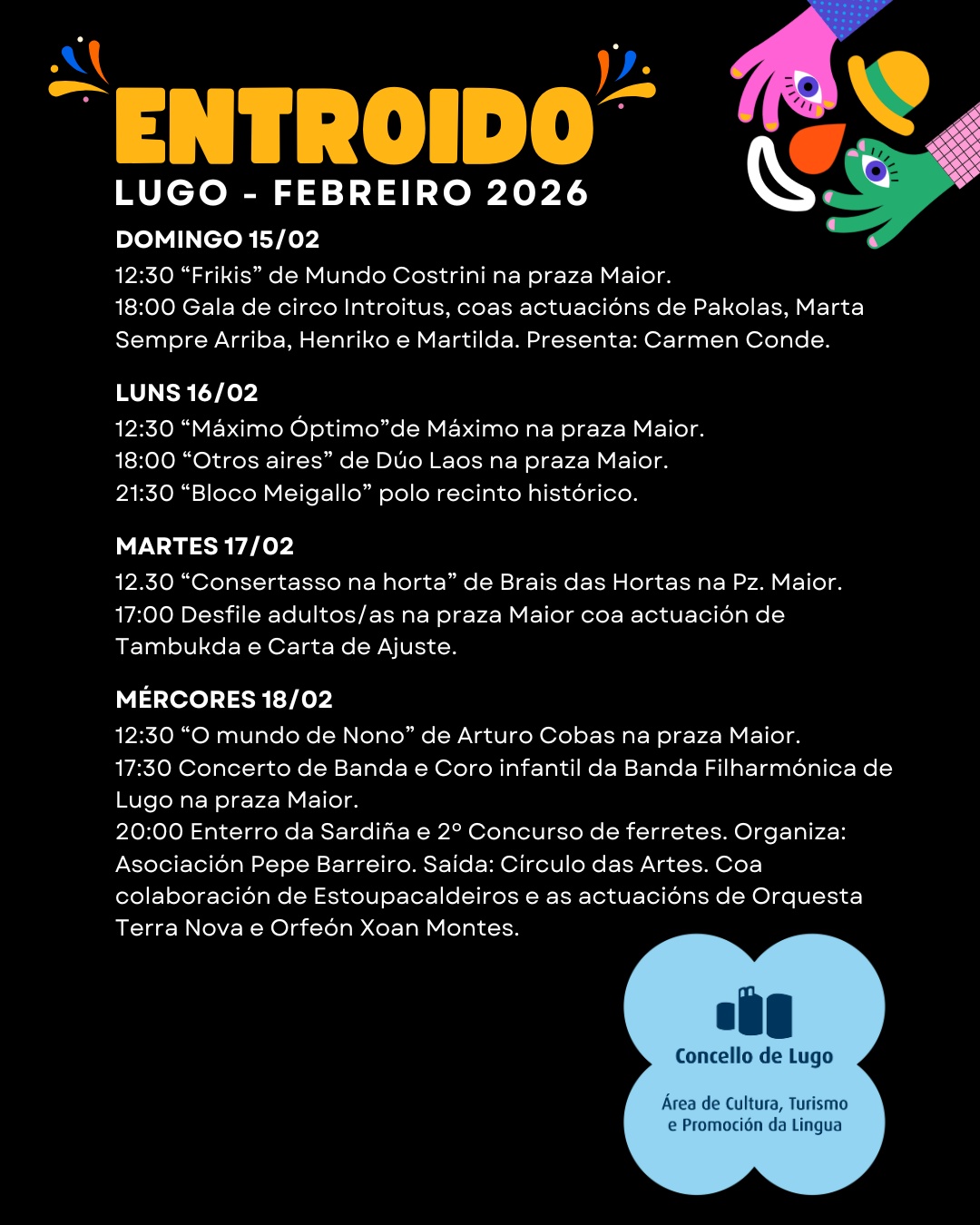 Programa de actividades polo entroido promovidas pola área de Cohesión Social do Concello de Lugo: