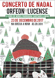 20:30 Concerto de Nadal do Orfeón Lucense e Coro de Nenos da Parroquia Santiago A Nova. Lugar: Igrexa A Nova.