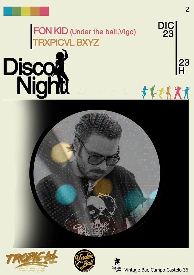 23:00 Disco Night en el Tropical con la visita del owner de Under The Ball Alfonso García Martín aka FON KID!!!!! con warm up especial del ex residente del Superfly Alex Nite.