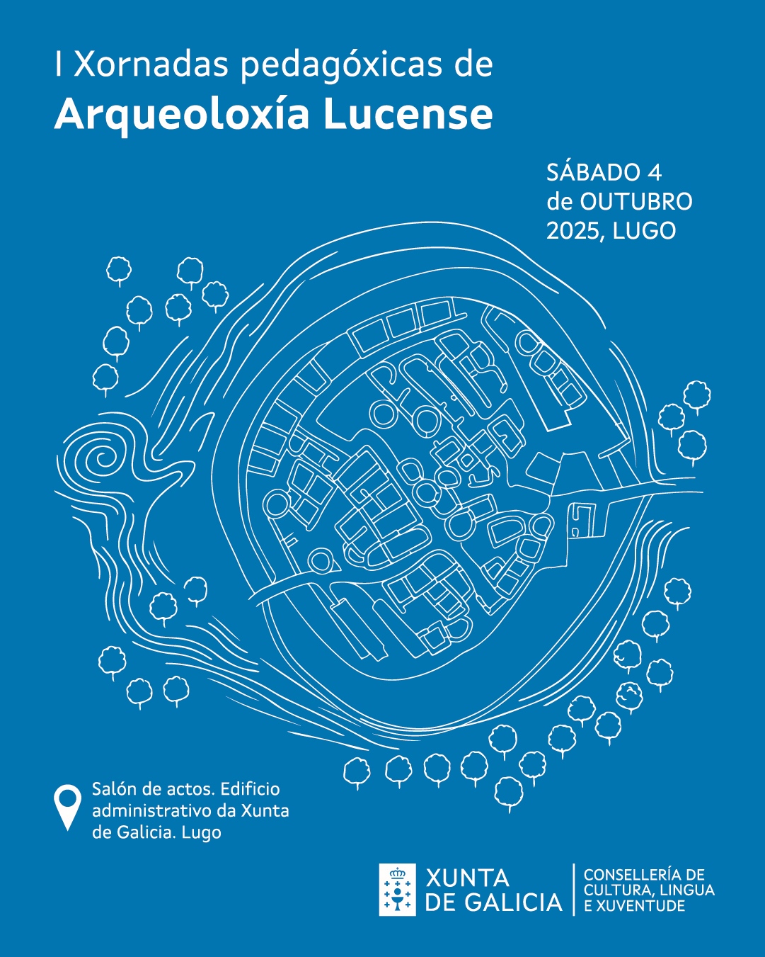 A Consellería de Cultura, Lingua e Xuventude organiza en Lugo as I Xornadas pedagóxicas de arqueoloxía lucense, que se celebrarán o sábado 4 de outubro no salón de actos da Delegación Territorial.